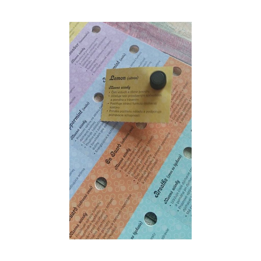 Karty stitkov na vzorkovanie. Vyborna pomoc pre tých, ktorí sa so svojimi znamymi delia o oleje. Na karte je čajovnik, kadidlo, ZenGen (DigestZen), Serenity, DeepBlue. Štítky majú vyrazený otvor vo veľkosti fľaštičky (2 alebo 1 ml), ktoré sa dá štítkom prestrčiť a tak sú informácie o danom olej vždy k dispozícii novému používateľovi . priamo na fľaštičke.Viac o produkte sa dozviete na:http://www.esencialneoleje.sk/events/categories/pravidelne-stretnutia/